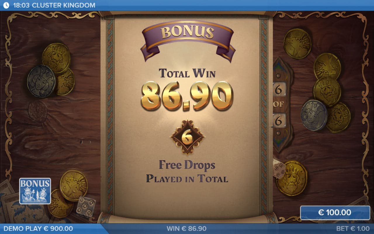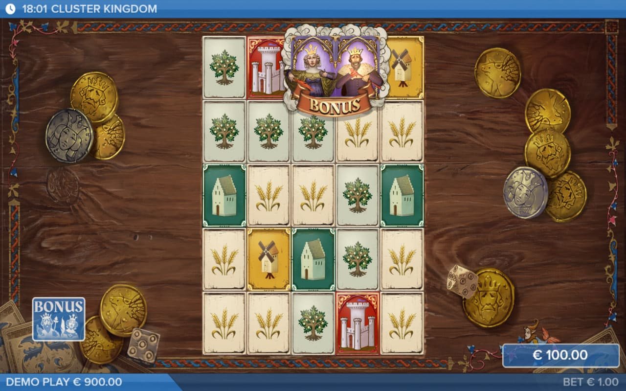 Cluster Kingdom's free spins feature can be triggered by collecting special symbols during the base game. Once activated, players enter a bonus round with additional multipliers, wilds, and more chances to win. Fully unlocking the grid during the free spins mode offers even greater rewards.