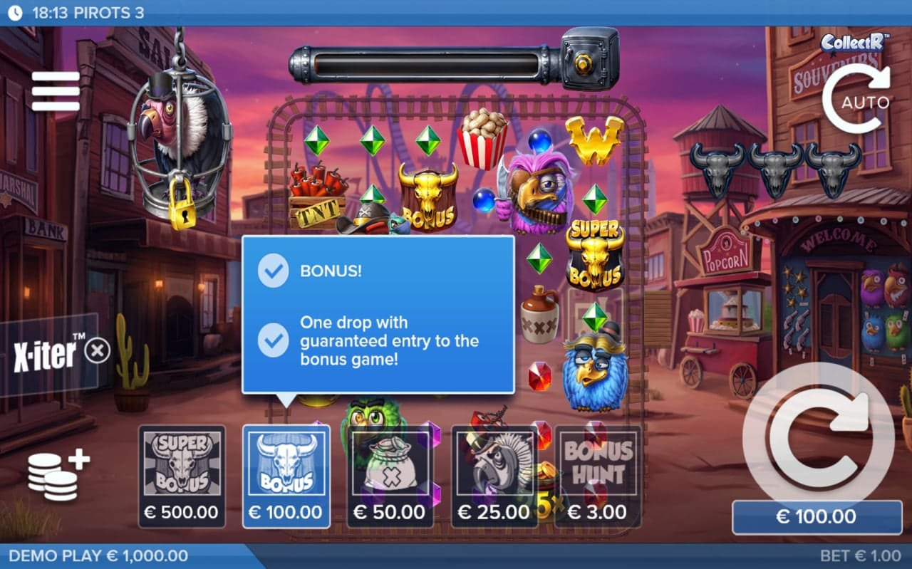Set in a vibrant Wild West setting, Pirots 3 takes players on a gem-collecting adventure with a colorful cast of parrot characters. Collect gems, unlock features, and outsmart the bandit in this thrilling slot game.