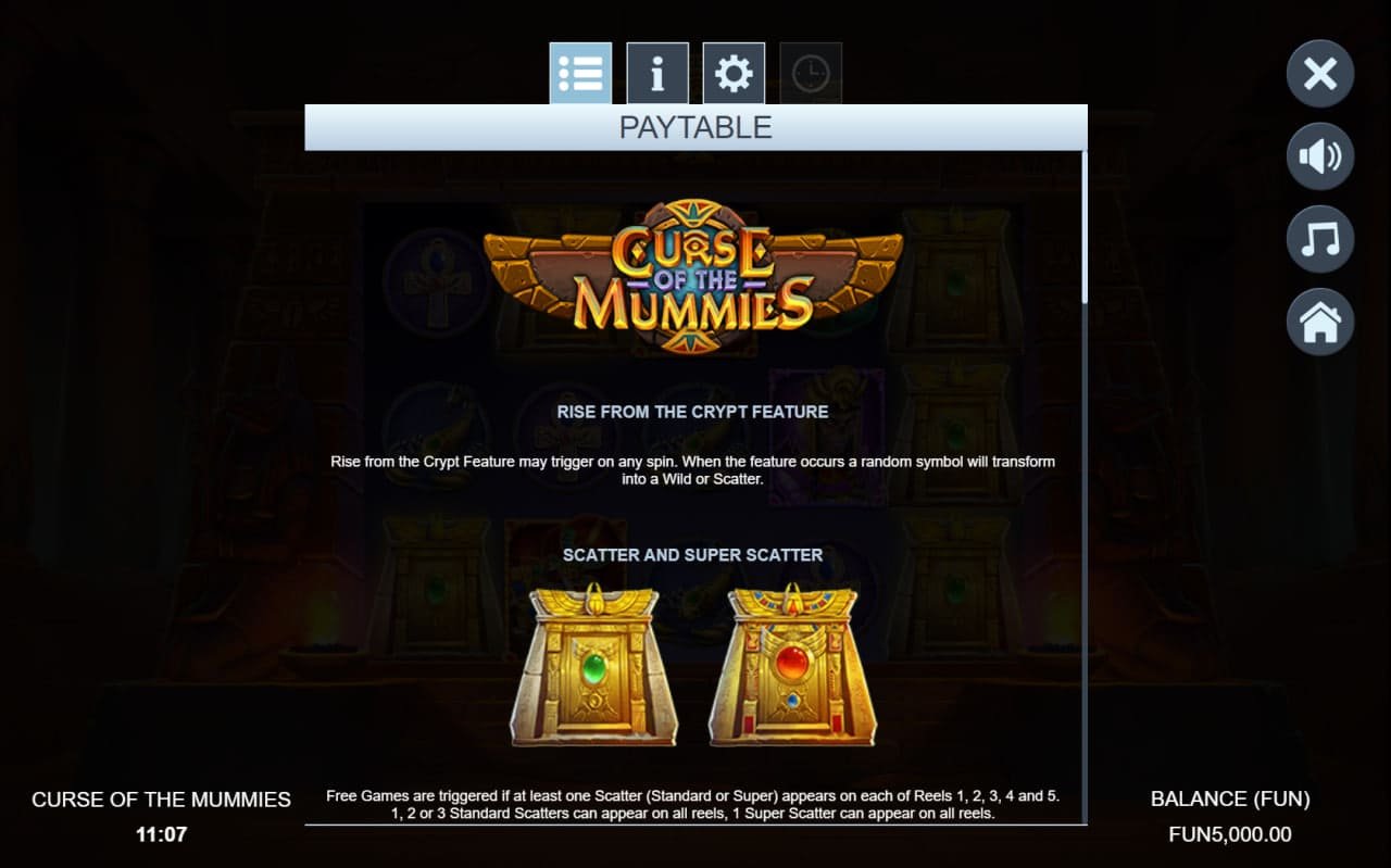 In Curse of the Mummies, players can trigger a variety of exciting features, such as symbol transformations and wilds that bring extra opportunities for big wins. Watch as symbols turn into wilds to help you unlock the treasures hidden within the tomb.